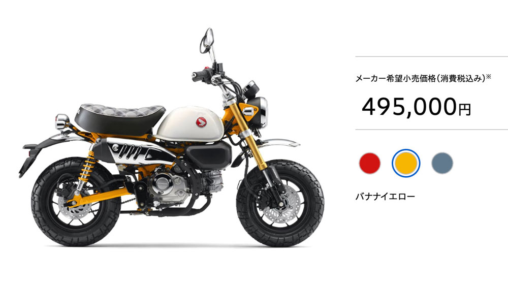 - 人気予想: 以前のモデルでもイエロー系は中古市場での値落ちが少なく、今回も「モンキーならこの色!」という指名買いが殺到すると予想されます。