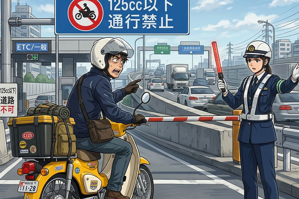 125ccバイクは、高速道路・自動車専用道路の走行が法律で禁止されています。通勤ルートに高速道路が含まれる場合は、バイパス・一般道でのルートを別途検討する必要があります。