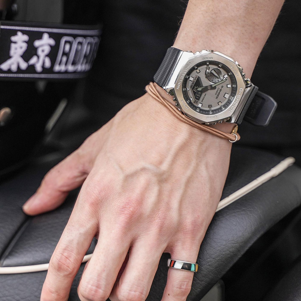 しかし、その偏見を打ち破ったのが「カシオーク」ことGM-2100だった。結論から言えば、これはタフネスと品格を両立した、大人ライダーの最適解。バイクの金属パーツと共鳴するメタルの質感、ライディングを邪魔しない驚異の薄さが、ツーリングの質を劇的に変えてくれる。