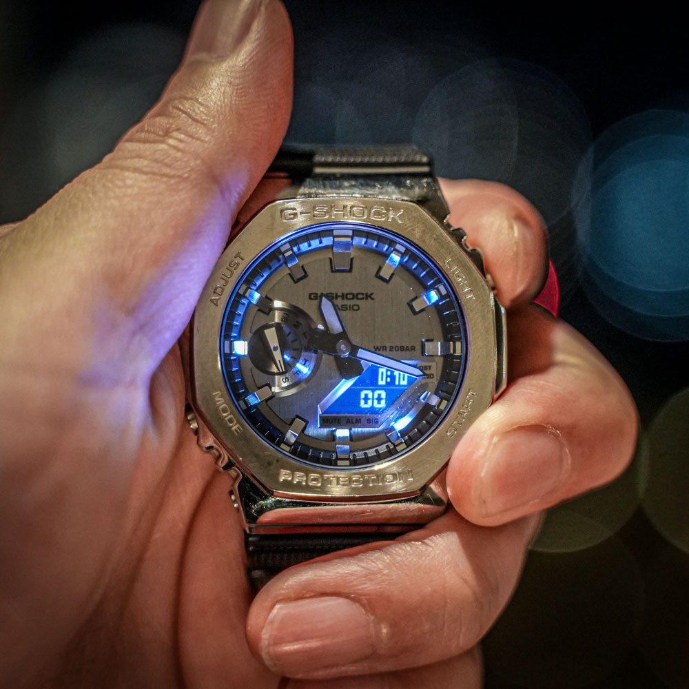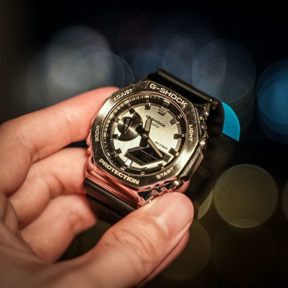 かつての俺と同じように「G-SHOCK=カジュアルな樹脂時計」というイメージを持っていた人ほど、このメタルの重厚感に驚く。