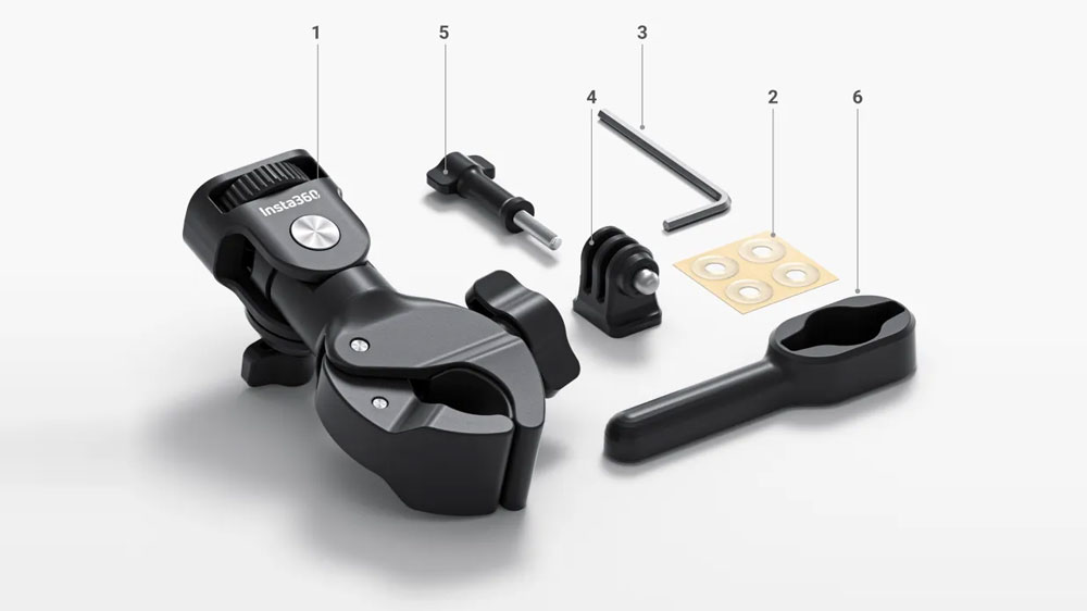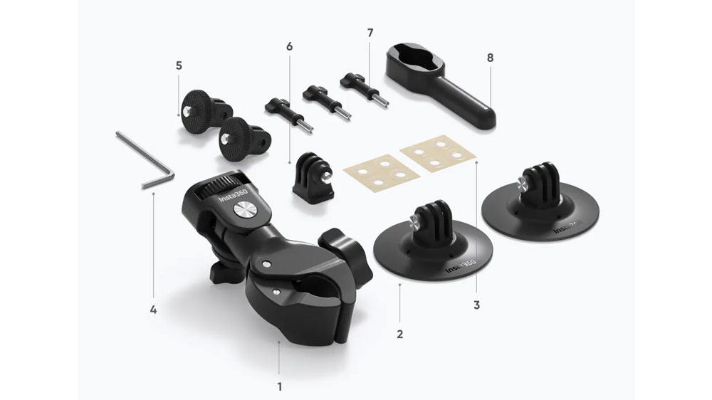Insta360 X5やAce、GOシリーズを取り付けるのに必要なマウントは一式揃っています。