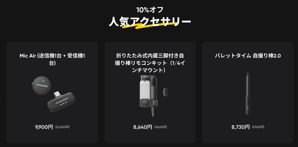 Insta360純正アクセサリーも割引対象!全製品10%OFF