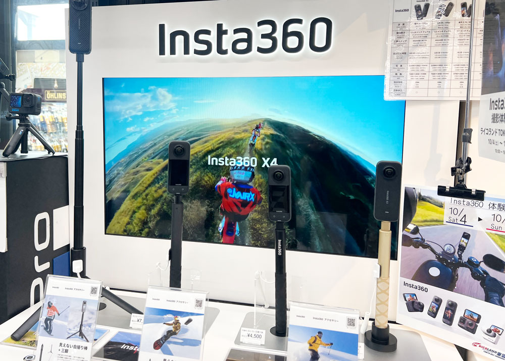 最近ではバイク店でもInsta360特設コーナーが設置され、360度カメラを装着しながら走行しているライダーを目にする機会も増えてきました。