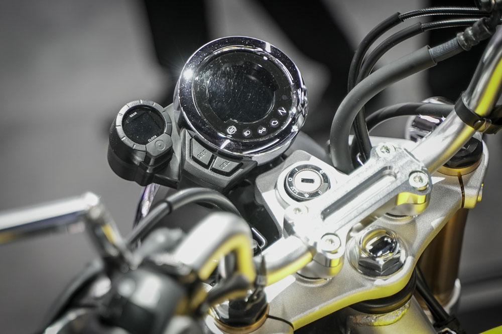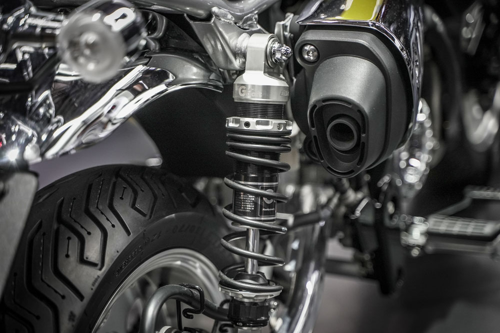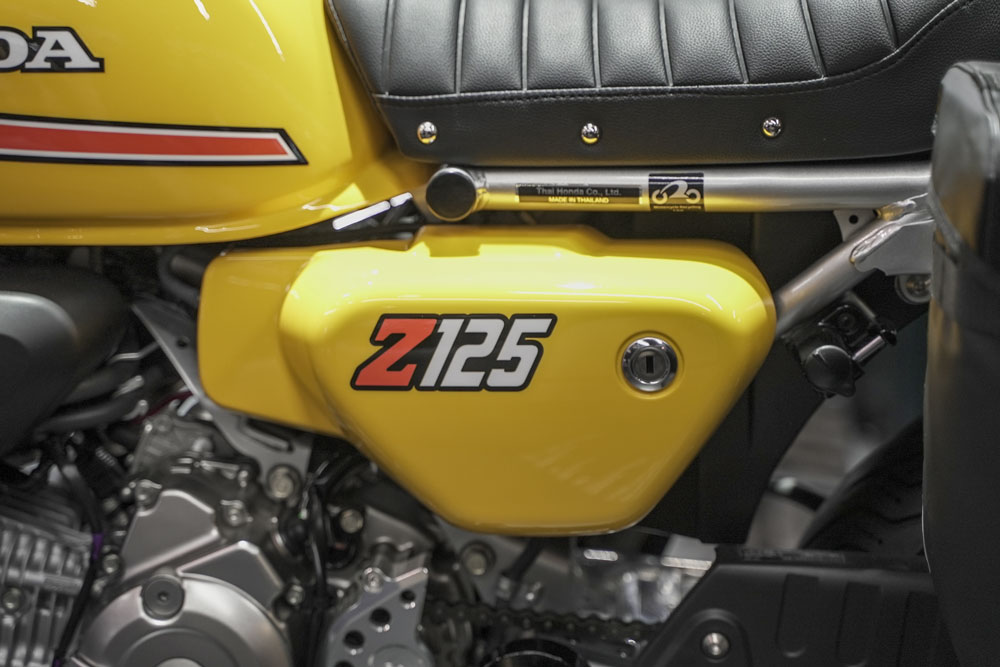 タンクとサイドカバーは1975年Z50Jの「パラキートイエロー」をイメージした鮮やかなイエローに塗装されています。