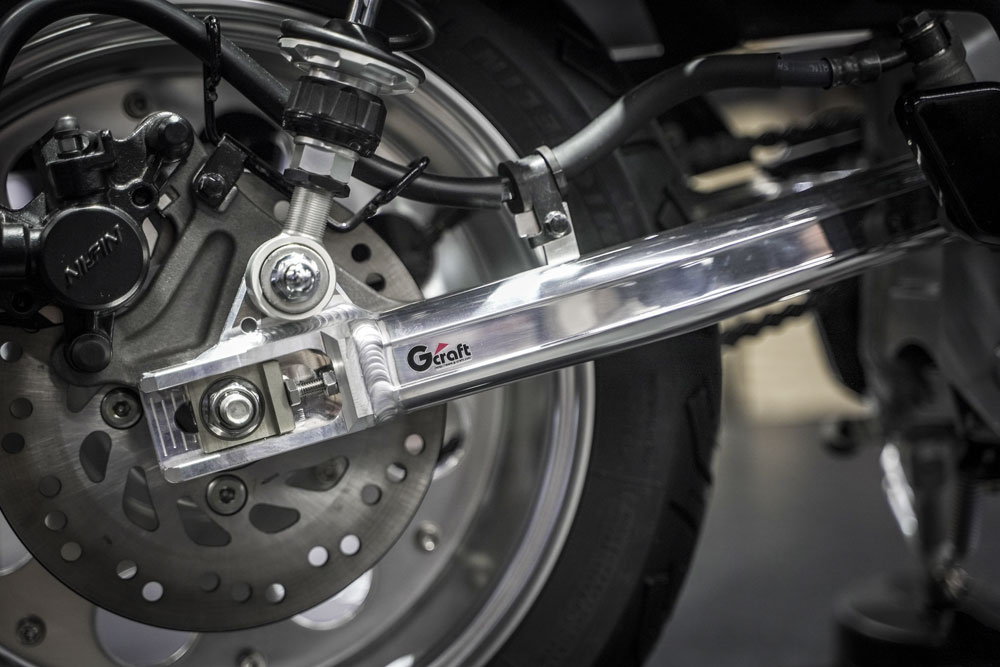 足回りの要となるスイングアームも、Gクラフト製のカスタム品に変更されています。