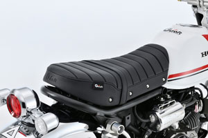 Gクラフト製のSCシート(鋲打ちタイプ)シート。クラシカルな雰囲気を残しつつ、カスタム感を際立たせています。シート一つで、モンキー125全体のレトロルックが格段に向上します。