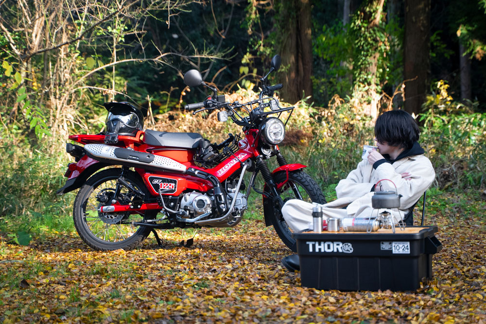「キャンプ」「ロングツーリング」「通勤」がメインの人。バイクを使って何かをする(=冒険の道具)として選ぶならハンターカブは最高の相棒です。