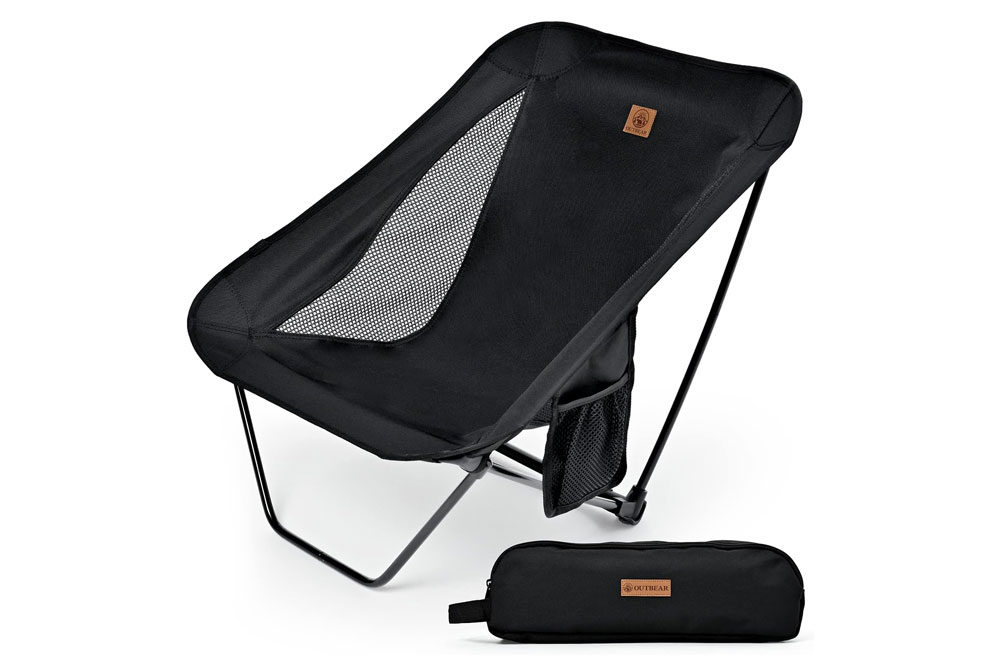 私が使用しているのはOUTBERAの「あぐらチェア」です。重さわずか850g。小さなバッグにも収まる、超軽量な椅子です。